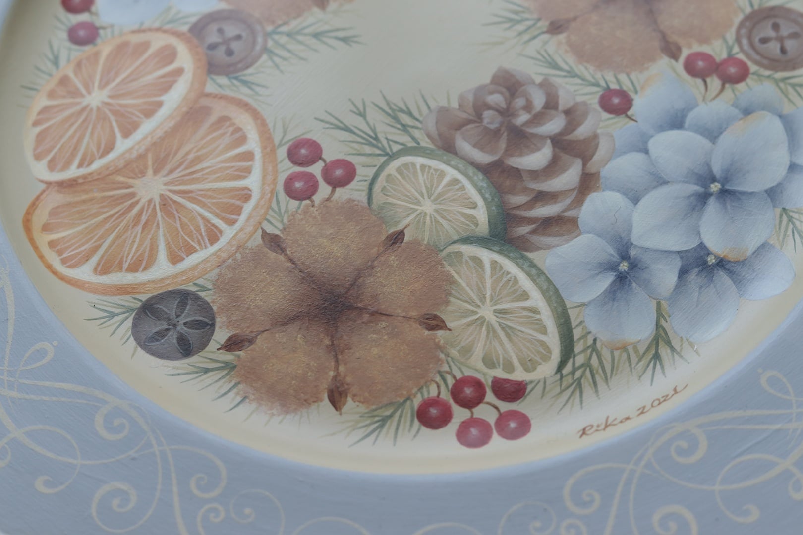 柑橘とクリスマスのモチーフを描く、中級者さん向きのアクリルデザインパケット
